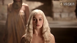 Taking a hot bath blonde babe Emilia Clarke reveals her cute juicy booty