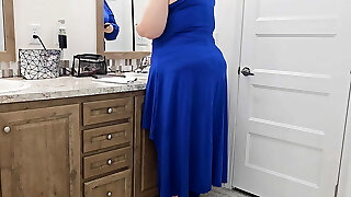 Risky jerk off while watching big culo hijab stepmom in the kitchen.