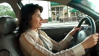 ziemlich first-timer braunhaarige stunner wird im taxi gelockt