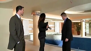 heiße assistentin wird von zwei schwänzen gebumst und erhält eine doppelte explosion im gesicht