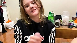 smoking teen chill handjob auf riesigem schwanz - viel sperma