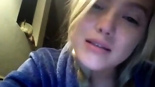 dicktittige platinum-blondine masturbiert