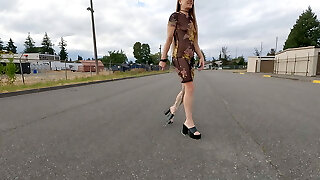 langmuschi, die über ein kilogramm schleppt (2.trio pfund) kette von meinem coochie in einem hauchdünnen kleid spazieren