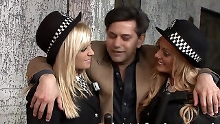 die kopplung mit einem uniformierten dreier von xxx blondinen in einer ungezogenen polizeiumgebung kommt mit einer schmutzigen sexy nackten schlampe