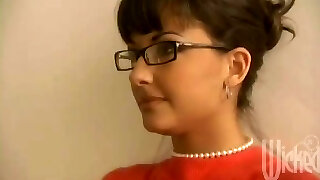 nerd stunner con grandi tette e occhiali ama succhiare scalpello pur avendo una pausa dallo studio