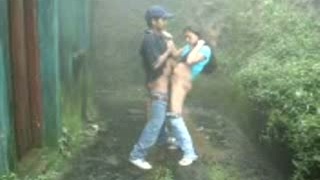 peccaminoso kinky amatoriale bruna gf fornisce il suo bf con un pompino all'aperto