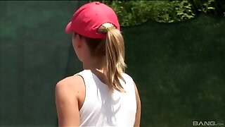 sportivo hottie helga colpi e ottiene strappato su un campo da tennis