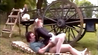 French maid in stockings fucks on a farm with good-sized cum-shot