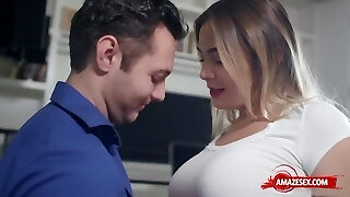 MILF with large boobs dicked down by her athletic stepson