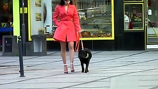 Black-haired girlfriend doesn't notice a big weenie next to her in public