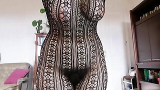 изворотливая сексуальная веселая мачеха чувственно теребит свои идеальные киски с супер длинным лобком