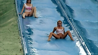 белокурая шлюшка с большими сиськами трахается в надувном бассейне