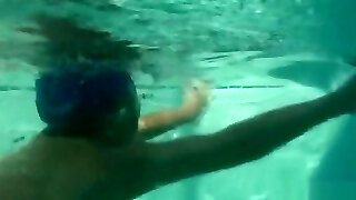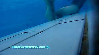 эта симпатичная цыпочка показывает свои мясистые сиськи под водой в бассейне, пока веб-камера видит ее!