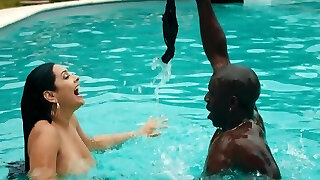 光滑的异族他妈的在游泳池让Marishax呻吟
